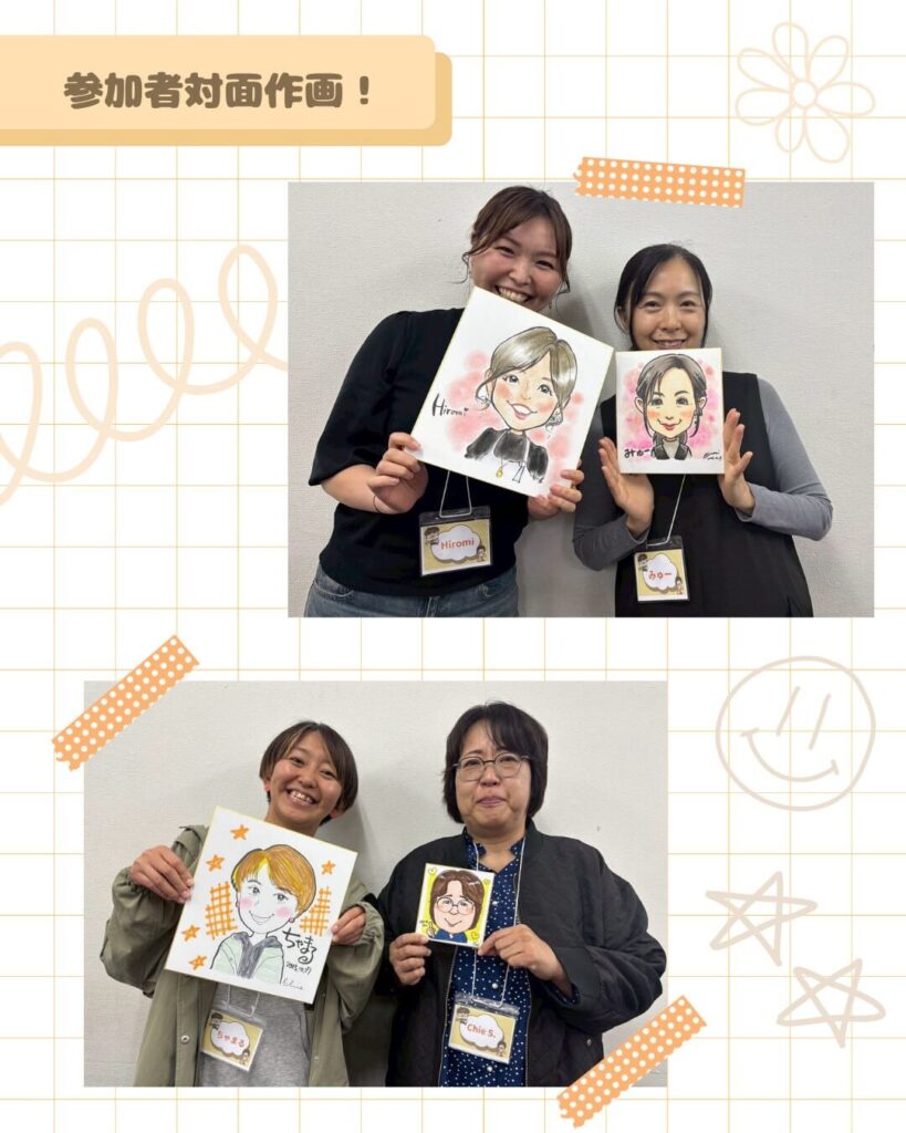 - 実践!対面似顔絵: ペアになって描き合いっこ!会話も弾み、笑顔があふれる時間となりました。