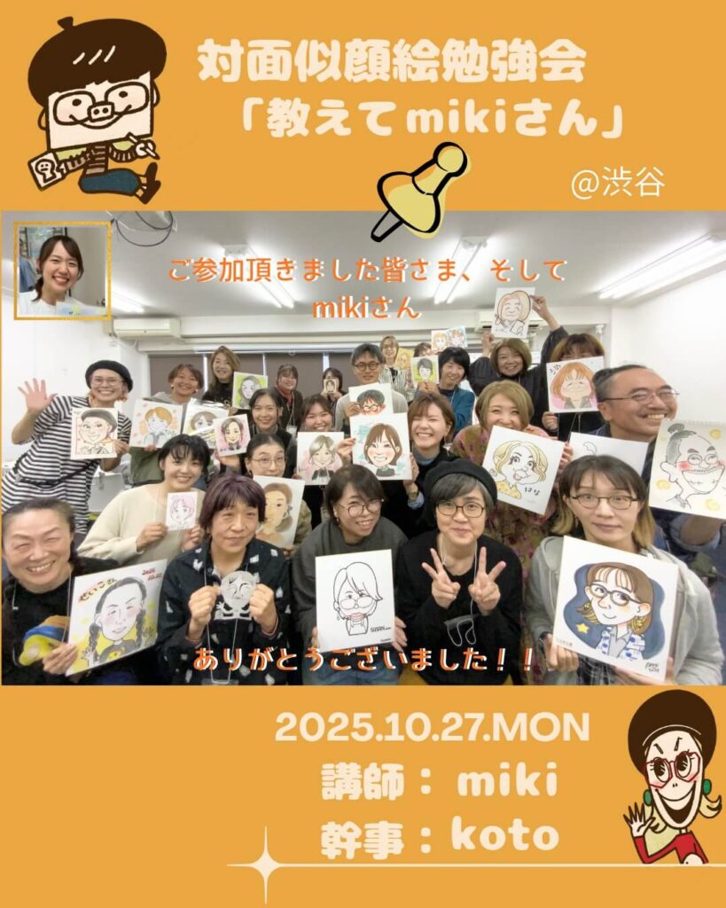 2025年10月27日(月)、「教えてmikiさん」と題した対面似顔絵勉強会を渋谷にて開催いたしました!